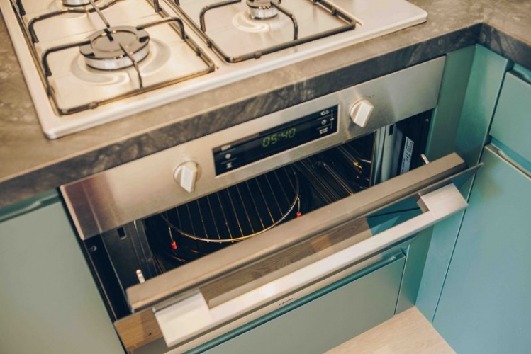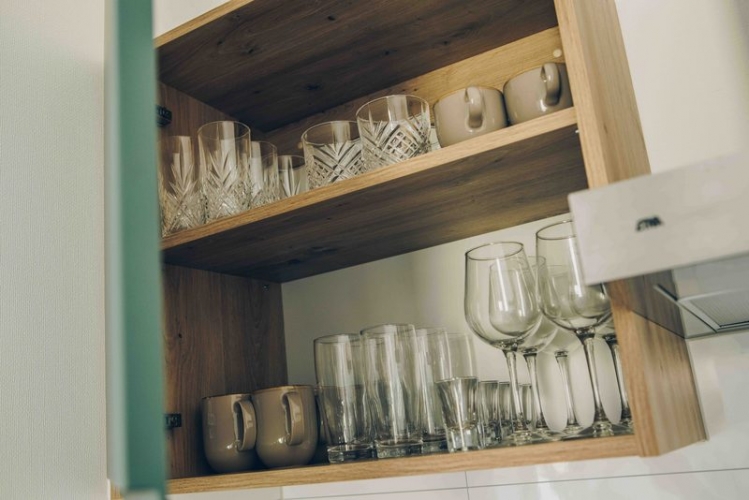 Binnen in de lodge vind je een afgesloten slaapkamer, ideaal voor een goede nachtrust, en een slaapbank voor de kinderen, die zorgt voor extra comfort. De lodge is volledig uitgerust, met een keuken die het makkelijk maakt om je eigen maaltijden te bereiden. Of je nu kiest voor een uitgebreid diner of een snelle hap na een avontuurlijke dag in de natuur, alles wat je nodig hebt is binnen handbereik. De keuken is voorzien van moderne apparatuur, zodat koken een plezierige ervaring is.